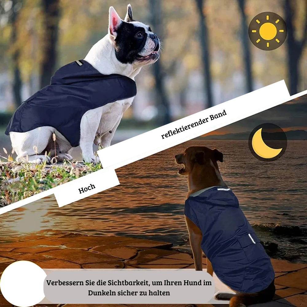 Mach Schluss mit nassen Pfoten und durchgeweichtem Fell – bestelle jetzt den wetterfesten Regenmantel mit Reflektoren für deinen Vierbeiner!